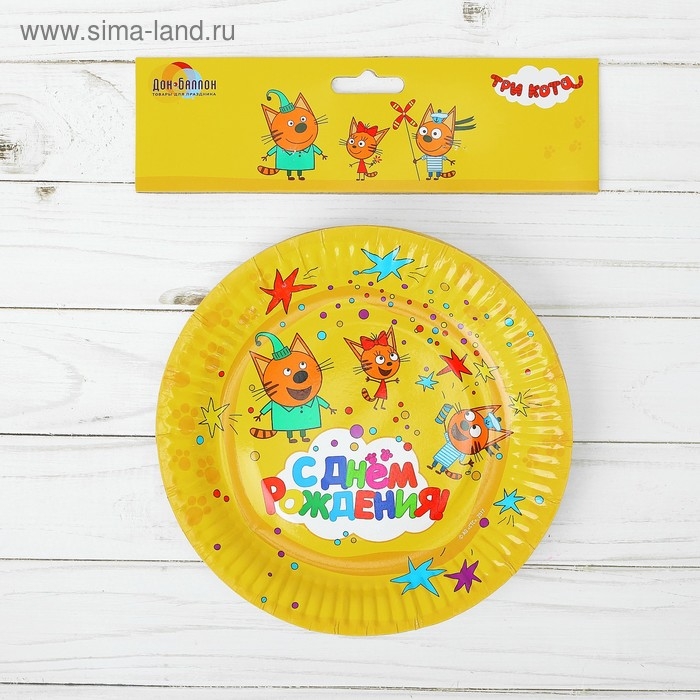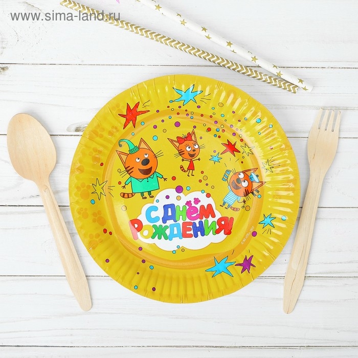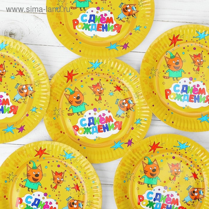 Тарелка бумажная «Три кота», 6 шт., 17 см, цвет жёлтый