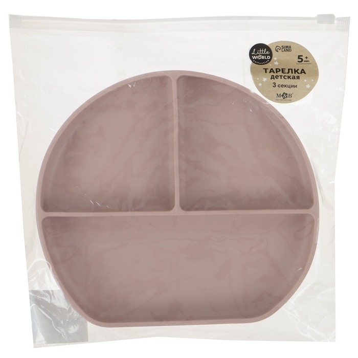 Тарелка детская 3 секции на присоске, M&B, 20,5х19х3, пыльная роза