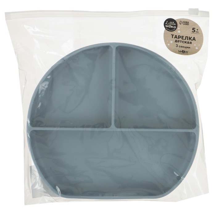 Тарелка детская 3 секции на присоске, M&B, 20,5х19х3, серый