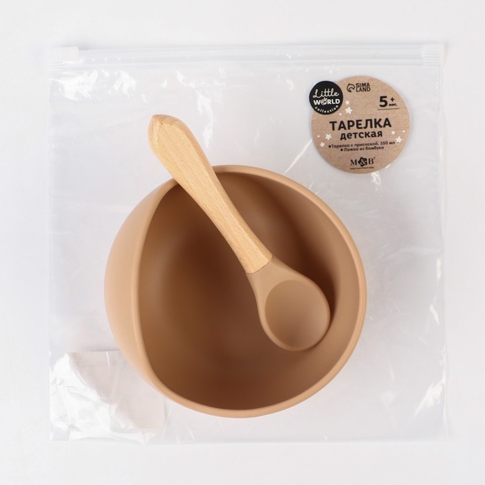 Тарелка детская на присоске, ложка, M&B, бежевый