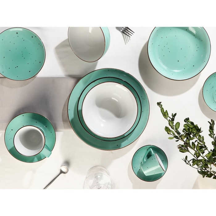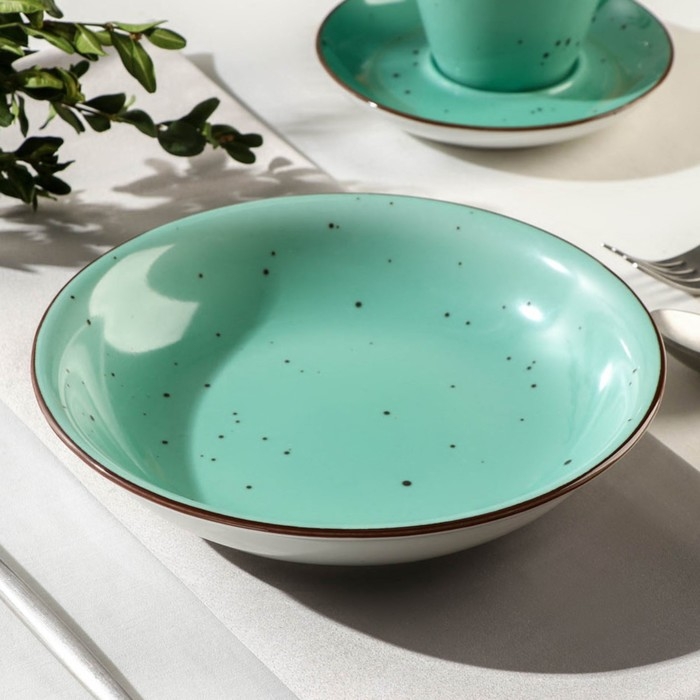 Тарелка фарфоровая глубокая DOTS menta, 500 мл, d=20 см, цвет бирюзовый