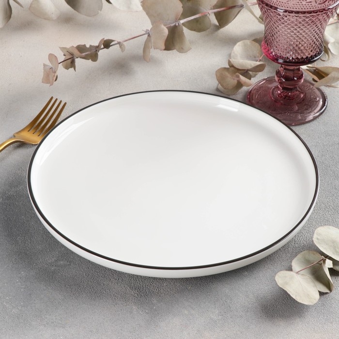 Тарелка фарфоровая с бортиком «Фронтьер», d=25 см, цвет белый