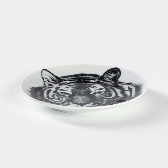 Тарелка фарфоровая «Тигр», d=17,5 см, белая