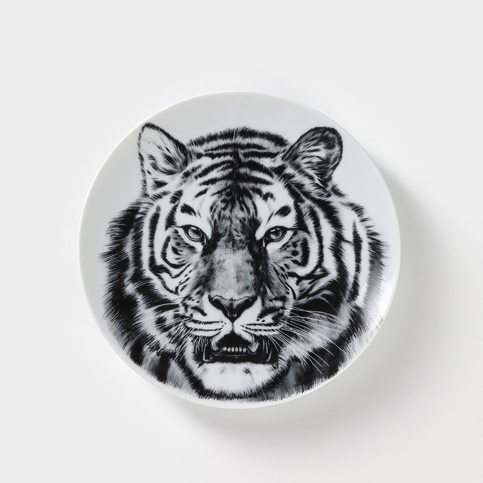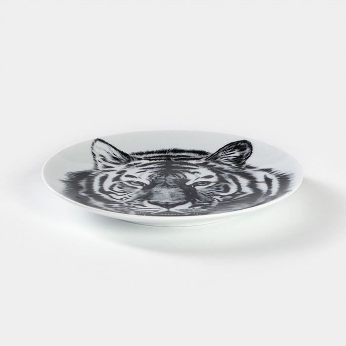 Тарелка фарфоровая «Тигр», d=20 см, белая
