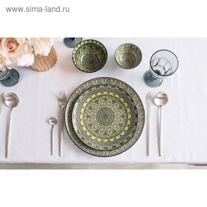 Тарелка керамическая Доляна «Мирсоле», d=22 см, цвет зелёный