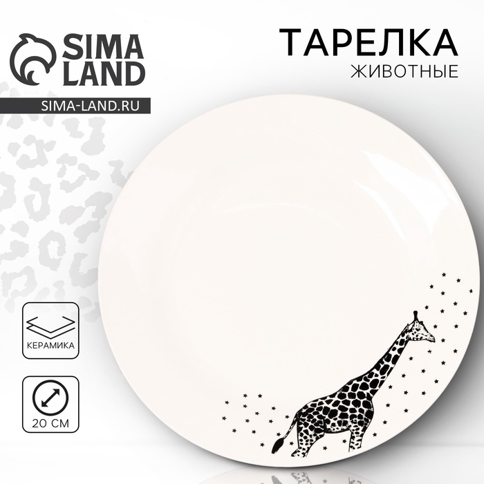 Тарелка керамическая «Животные», 20 см, цвет белый