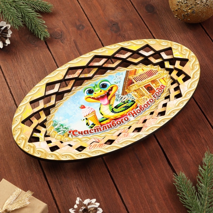 Тарелка конфетница овальная "Счастливого нового года 2025", золото