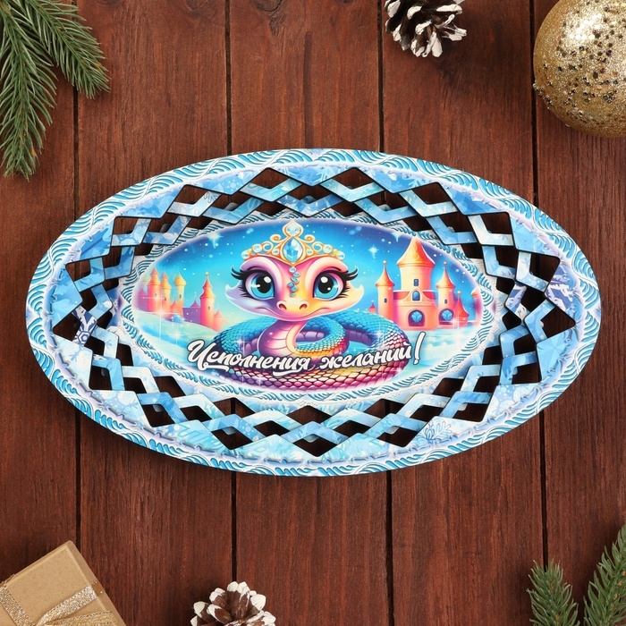Тарелка конфетница овальная "Символ года 2025.Исполнения желаний"