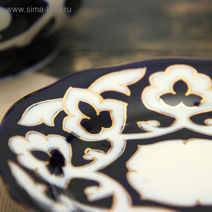 Тарелка Риштанская Керамика "Узоры", синяя, глубокая, микс, 20 см