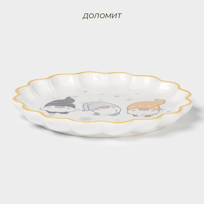 Тарелка новогодняя Доляна «Домашние гномики», d=20,5 см, керамика, цвет белый