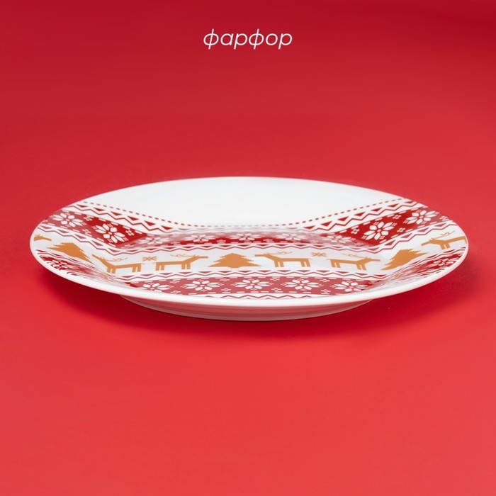 Тарелка новогодняя Доляна «Финский лес», d=20,5 см, фарфор, цвет белый