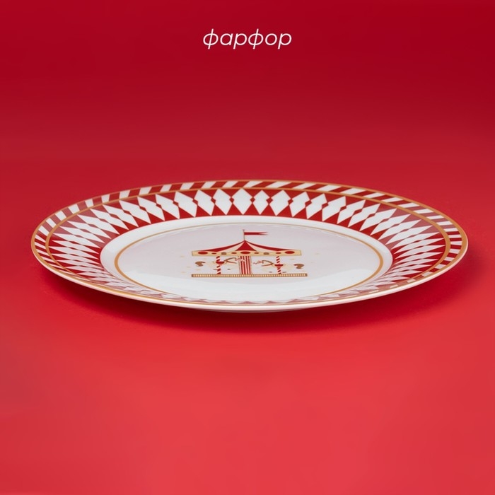 Тарелка новогодняя Доляна «Парк аттракционов», d=25,5 см, фарфор, цвет белый
