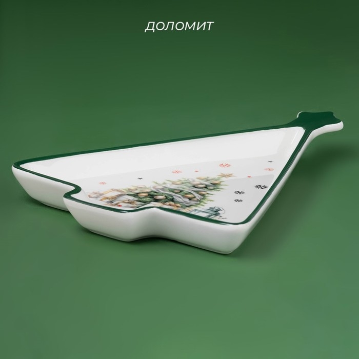Тарелка новогодняя Доляна «Приближение чуда», 26×20×3 см, керамика, цвет белый