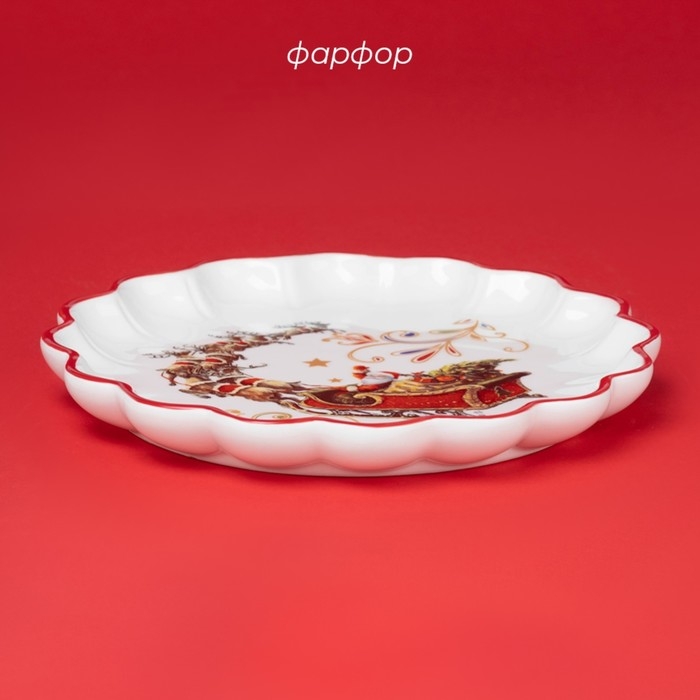 Тарелка новогодняя Доляна «Сани Деда Мороза», d=20 см, керамика, цвет белый