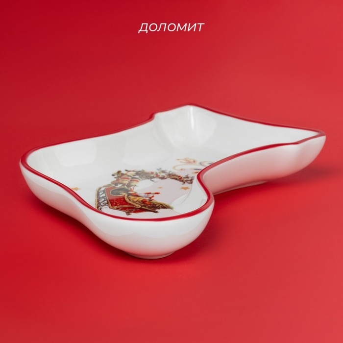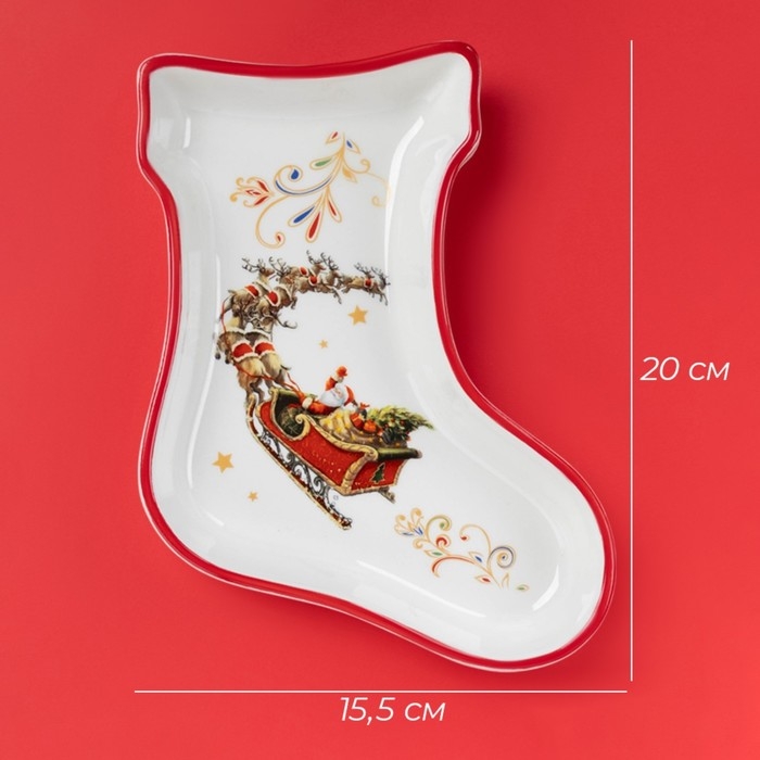 Тарелка новогодняя Доляна «Сани Деда Мороза», керамика, 20×15,5×3,5 см, цвет белый