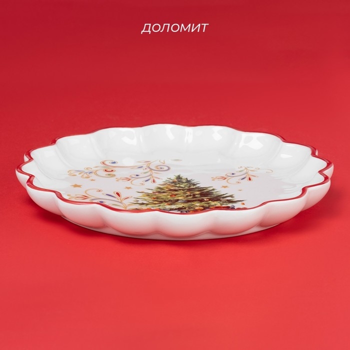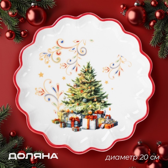 Тарелка новогодняя Доляна «Волшебное дерево», d=20 см, керамика, цвет белый