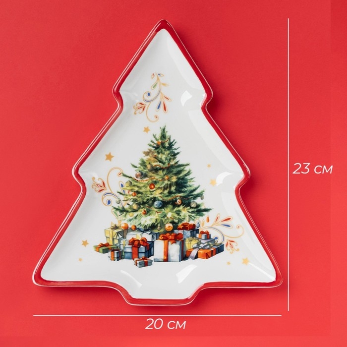 Тарелка новогодняя Доляна «Волшебное дерево», керамика, 23×20×2,2 см, цвет белый