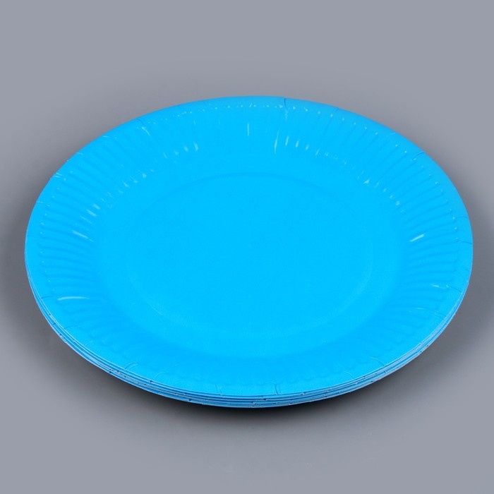 Тарелка одноразовая бумажная однотонная, голубой цвет 18 см, набор 10 штук