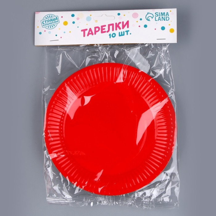 Тарелка одноразовая бумажная однотонная, красный цвет 18 см, набор 10 штук