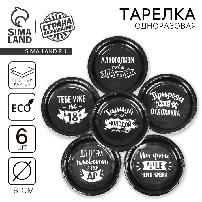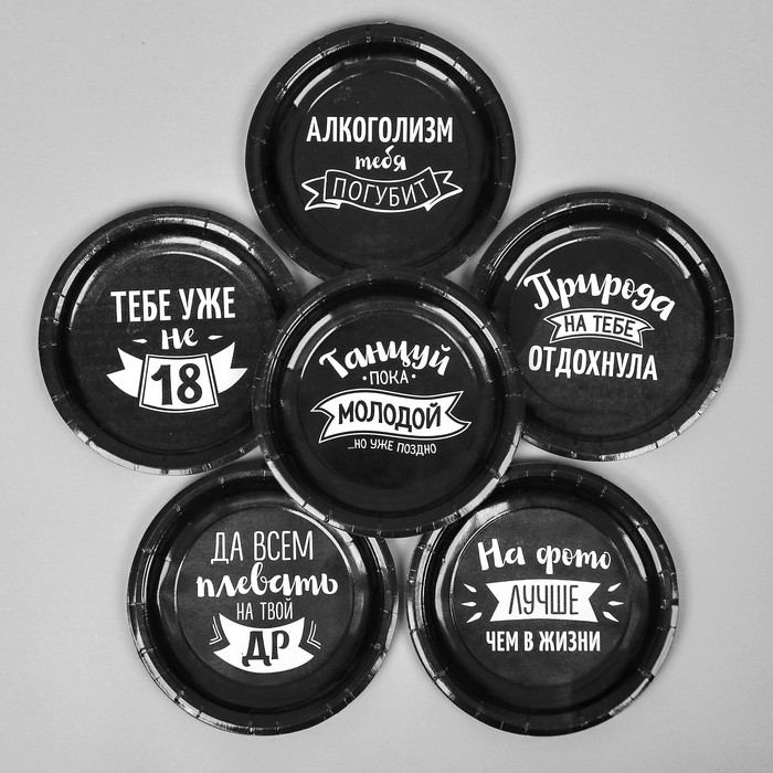Тарелка одноразовая бумажная "Оскорбления", набор 6 шт, виды МИКС