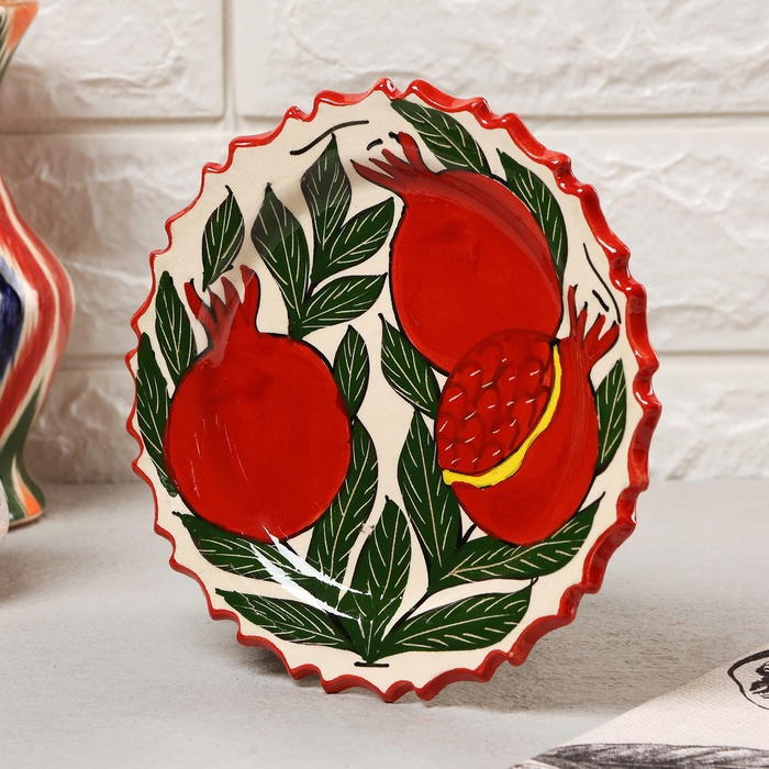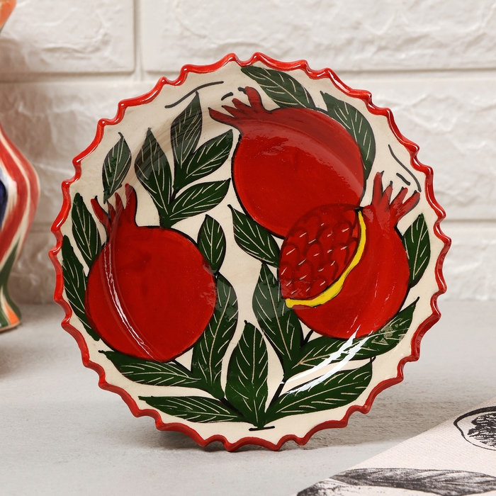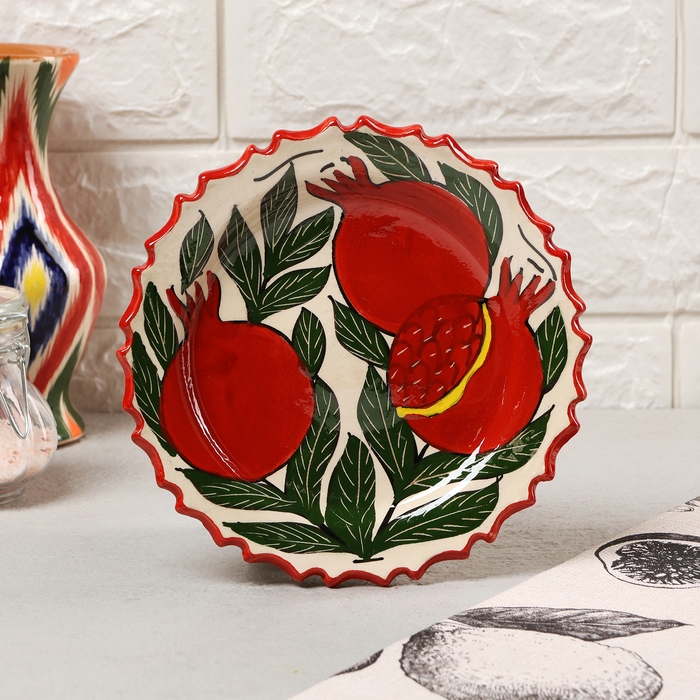 Тарелка Риштанская Керамика "Гранаты", 17см, рифлёная