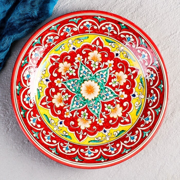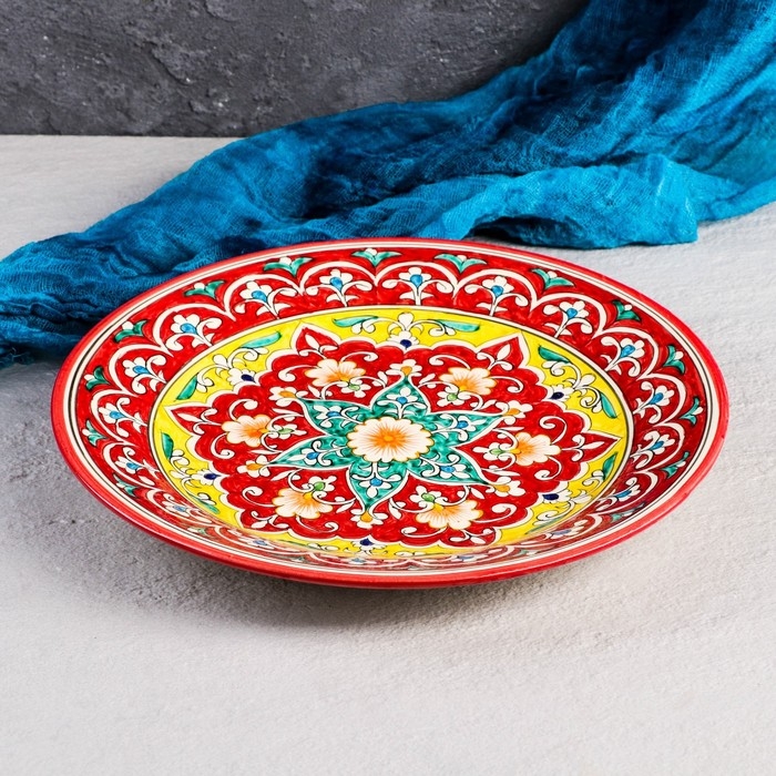 Тарелка Риштанская Керамика "Узоры", 28 см, красная