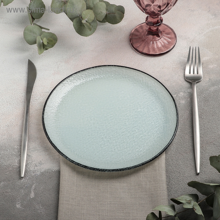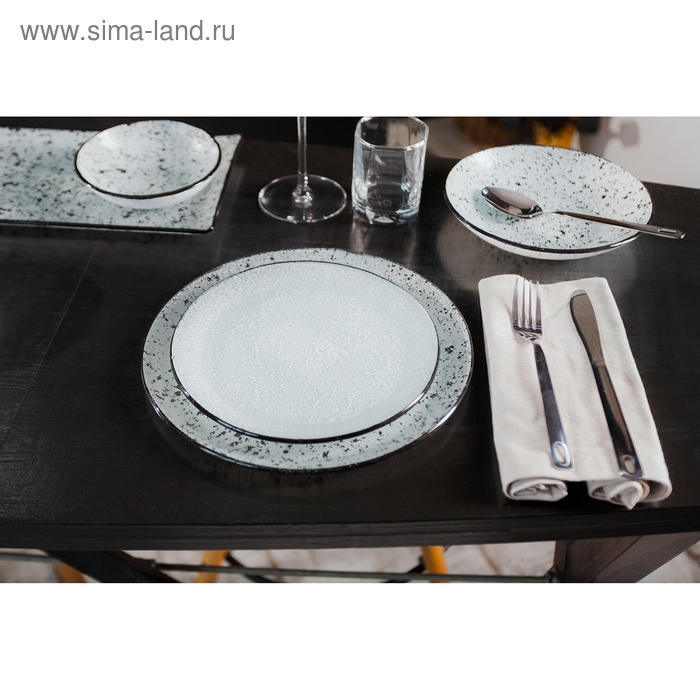 Тарелка стеклянная обеденная Magistro «Мрамор», d=20 см, цвет белый