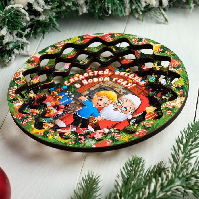 Тарелка сувенирная деревянная "Новогодний. Расскажи стишок Деду Морозу", цветной