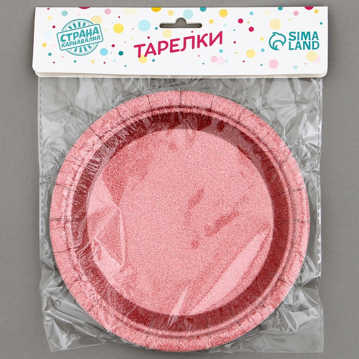 Тарелки бумажные «Блёстки», 6 шт, цвет бордовый