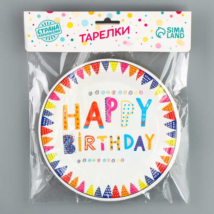 Тарелки бумажные «С днём рождения», 6 шт.