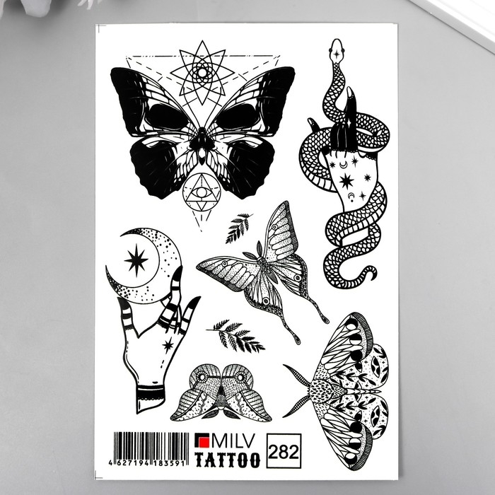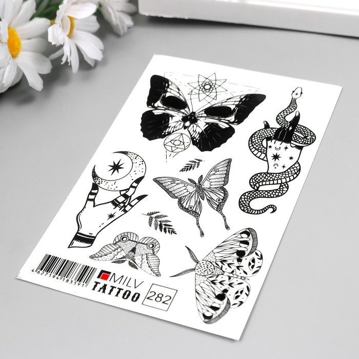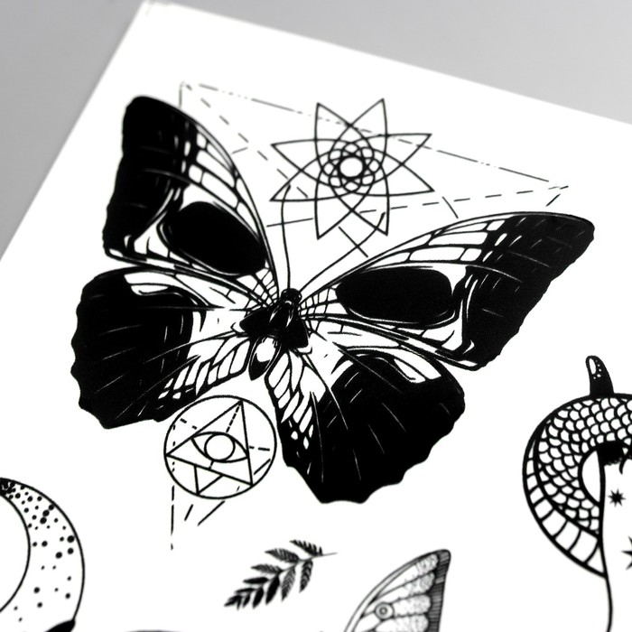 Татуировка на тело "Бабочки ч/б" 10х15 см