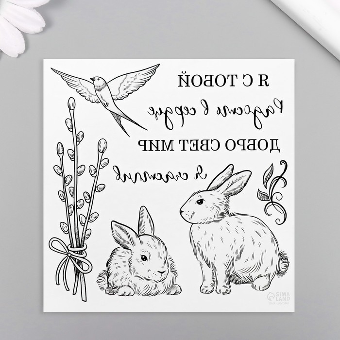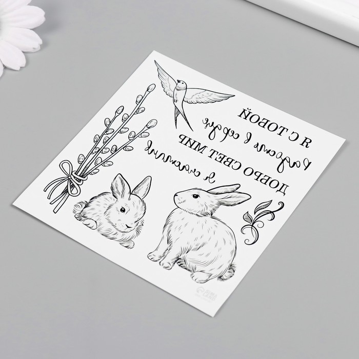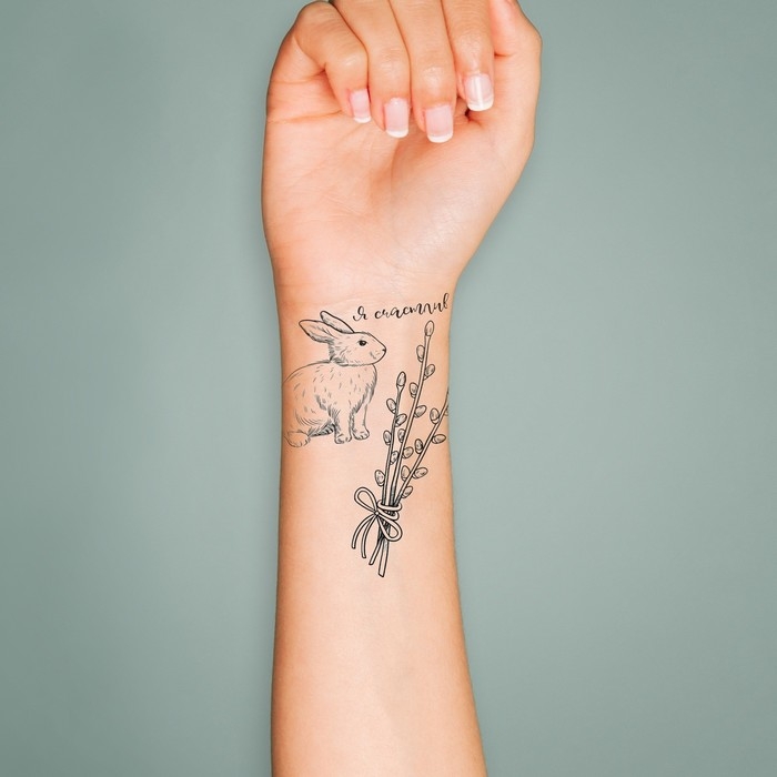 Татуировка на тело чёрная "Кролики и верба" 10х10 см