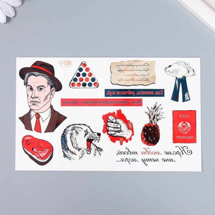 Татуировка на тело цветная "В.В. Маяковский - Я достаю из широких штанин" 18х11 см