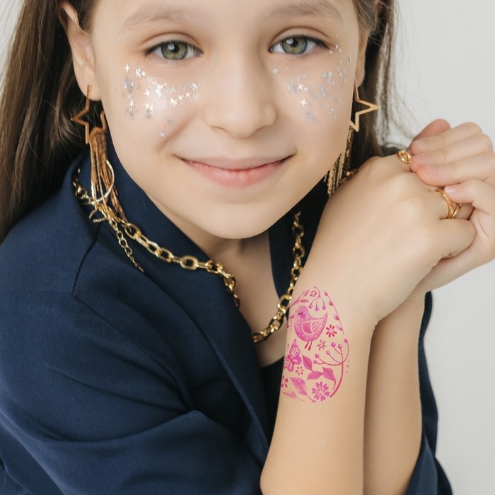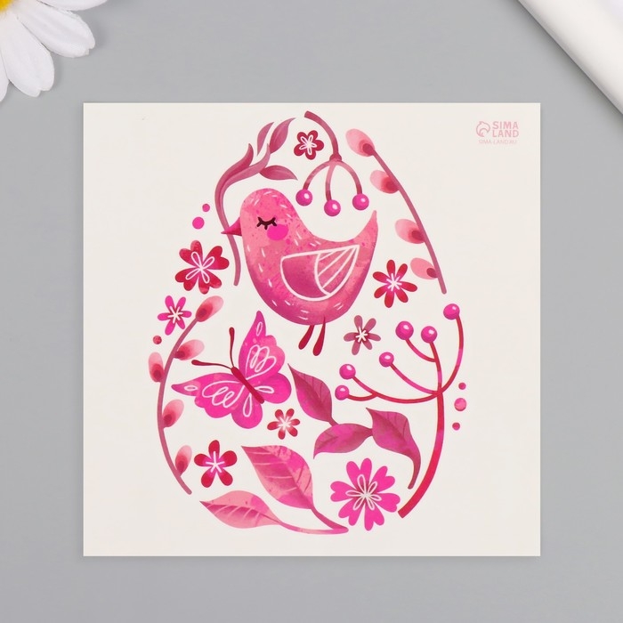 Татуировка на тело цветная "Яйцо с розовыми узорами" 10х10 см