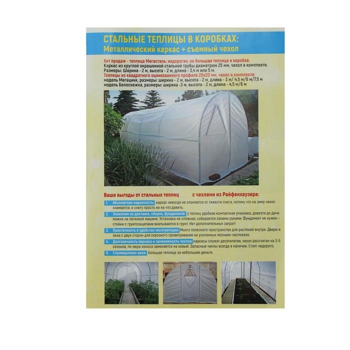 Теплица «МегаЦинк», 6 × 2 × 2 м, оцинкованный профиль 20 × 20 мм, чехол из спанбонда 80 г/м²