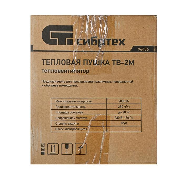 Тепловая пушка "СИБРТЕХ" ТВ-2М, электрическая, 2 кВт, до 20 м2, 230 В, защита от перегрева