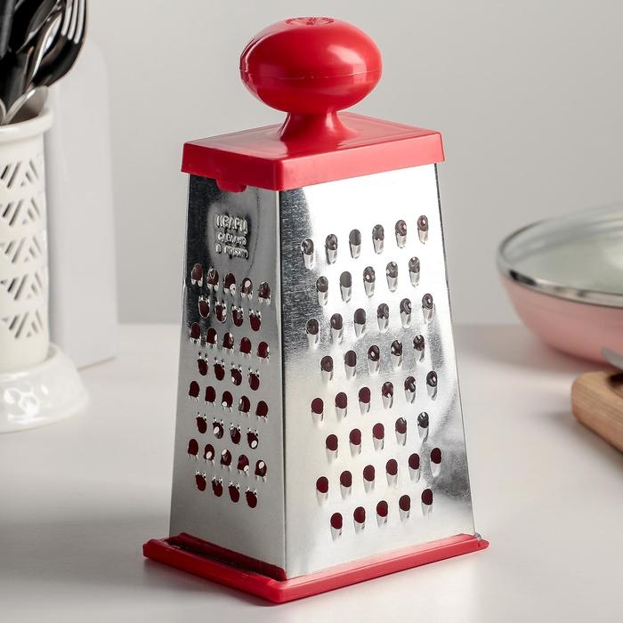 Тёрка «Комфорт» 4 грани, с крышкой-дозатором и круглой пластмассовой ручкой, 11×8,5×23 см, цвет МИКС