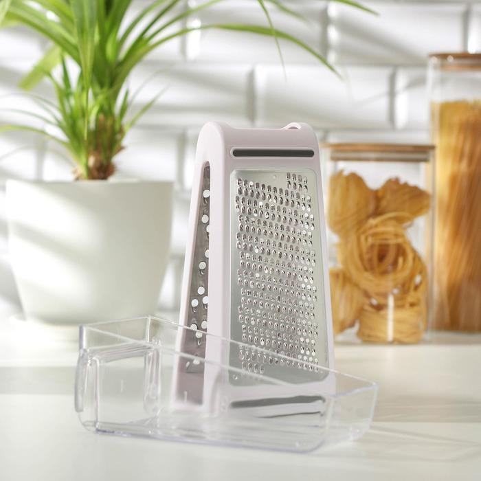 Тёрка с контейнером «Умелец», 13,5×9×21,5 см, ABS-пластик, нержавеющая сталь, цвет белый