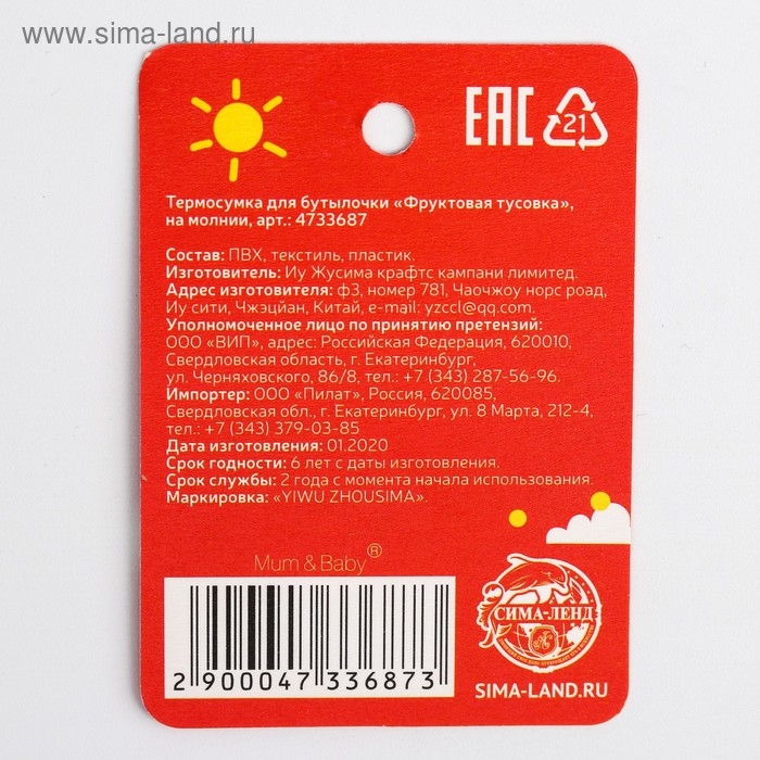 Термо-чехол для бутылочки «Фруктовая тусовка» на молнии