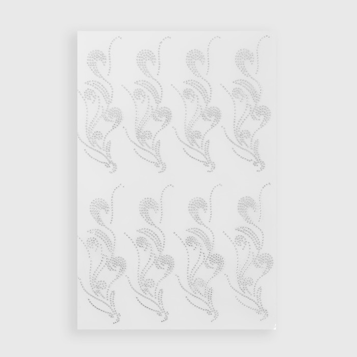 Термоаппликация из страз «Узор», 15 × 5,5 см, 8 шт на листе, цвет белый