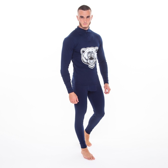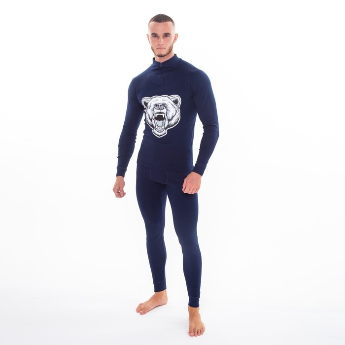Термобельё мужское НАЧЁС (фуфайка, кальсоны) принт медведь, цвет тёмно-синий, размер 52