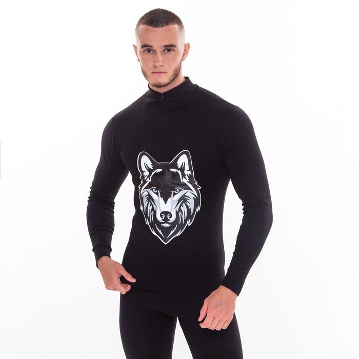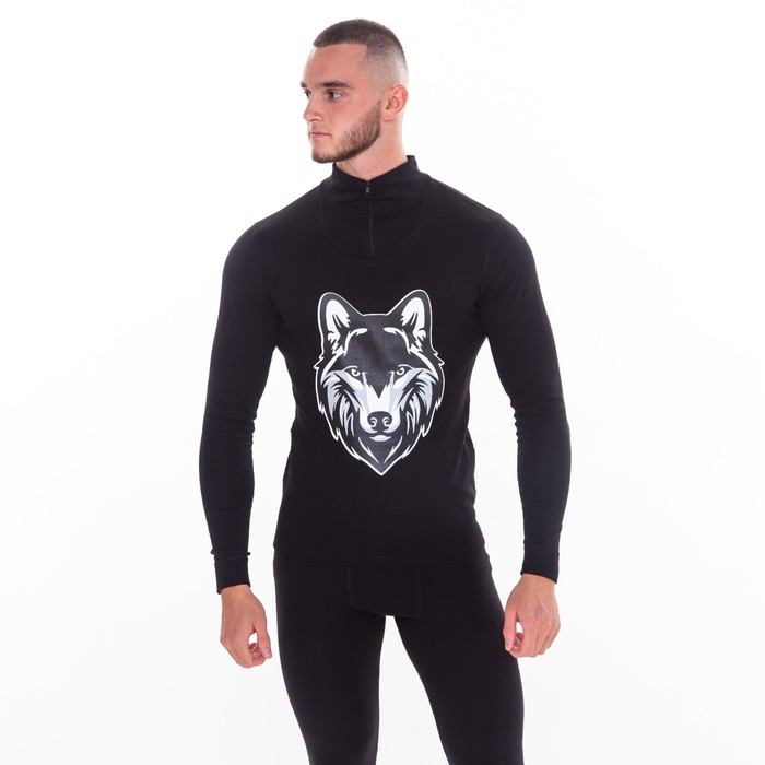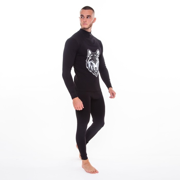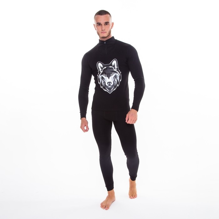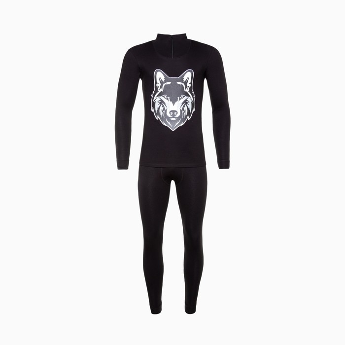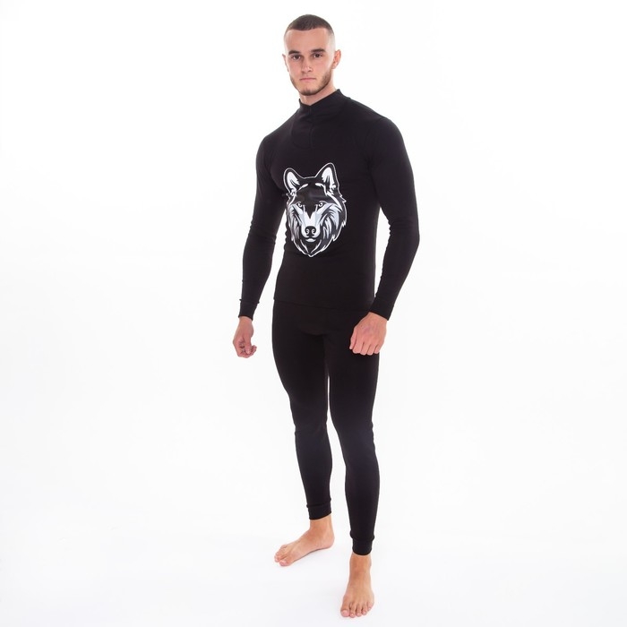 Термобельё мужское НАЧЁС (фуфайка, кальсоны) принт волк, цвет чёрный, размер 50
