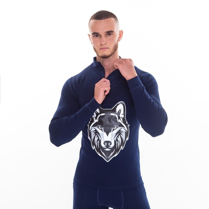Термобельё мужское НАЧЁС (фуфайка, кальсоны) принт волк, цвет тёмно-синий, размер 54