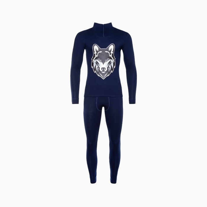 Термобельё мужское НАЧЁС (фуфайка, кальсоны) принт волк, цвет тёмно-синий, размер 56