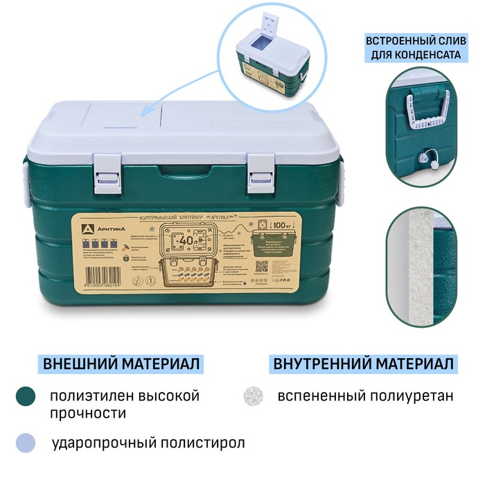 Термоконтейнер "Арктика", 40 л, 64 х 35 х 35.5 см, зеленый