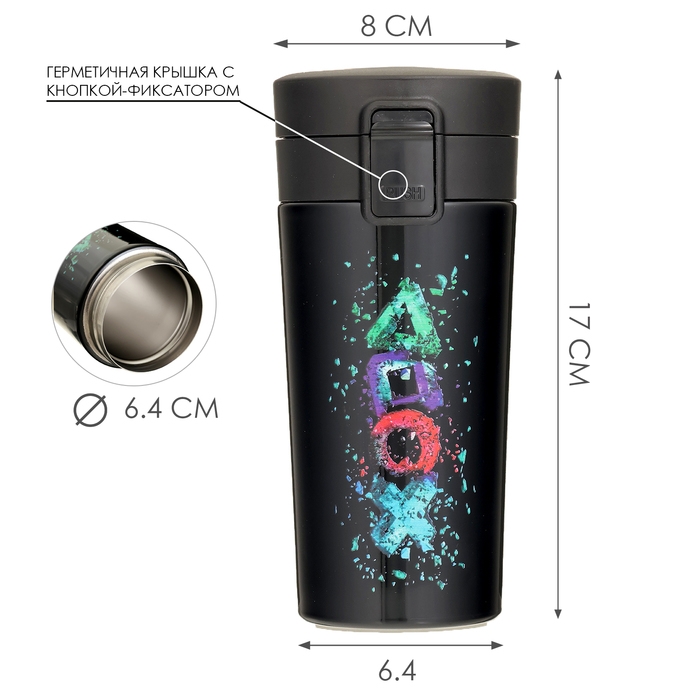 Термокружка, 380 мл, Style "Геймерская", сохраняет тепло до 8 ч