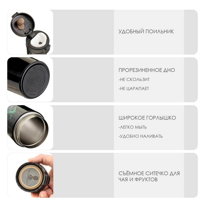 Термокружка для кофе и чая идеальна для офиса, автомобиля, длительных прогулок и детям в школу, станет идеальным подарком мужу, папе, брату или другу на День Рождения, Новый год или любой другой праздник.