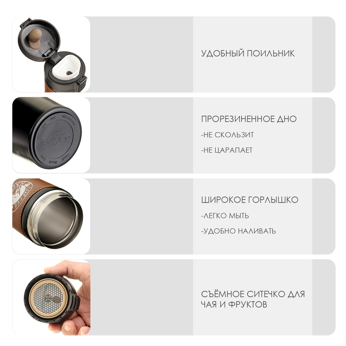 Термокружка для кофе и чая идеальна для офиса, автомобиля, длительных прогулок и детям в школу, станет идеальным подарком мужу, папе, брату или другу на День Рождения, Новый год или любой другой праздник.
