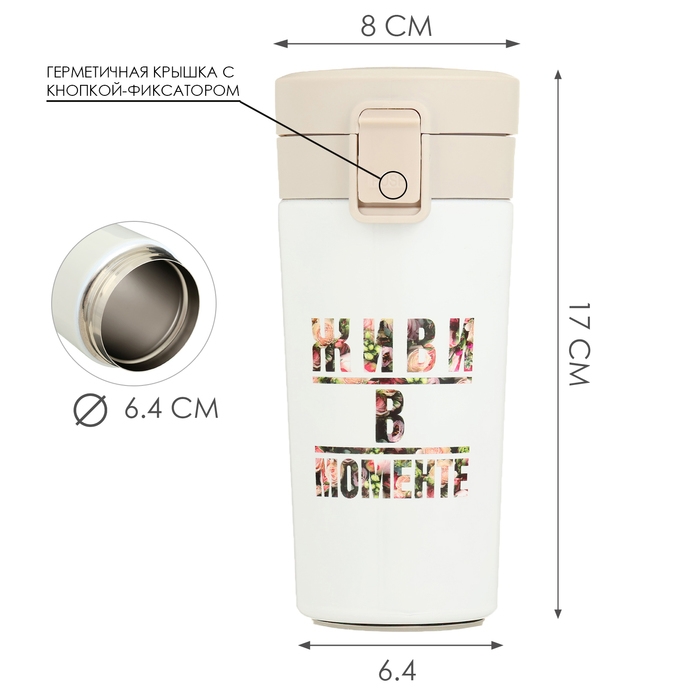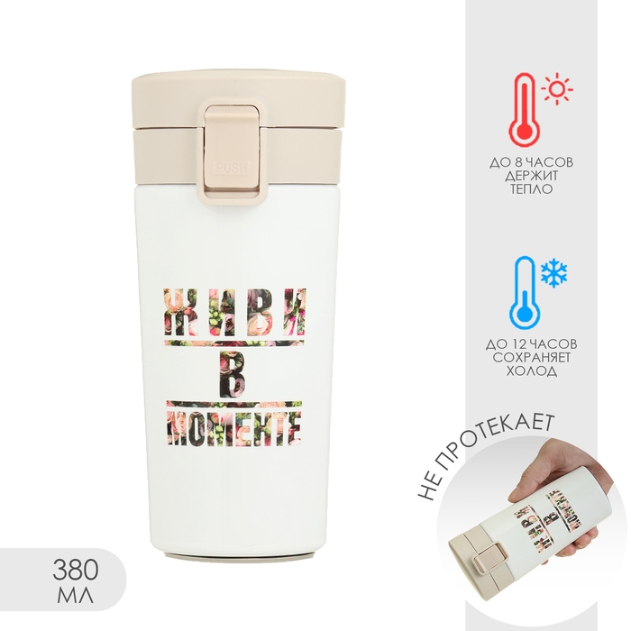 Термокружка, 380 мл, Style "Живи в моменте", сохраняет тепло до 8 ч