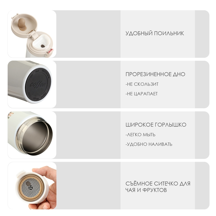 Термокружка для кофе и чая идеальна для офиса, автомобиля, длительных прогулок и детям в школу, станет идеальным подарком маме, сестре, тёте или подруге на День Рождения, Новый год или любой другой праздник.